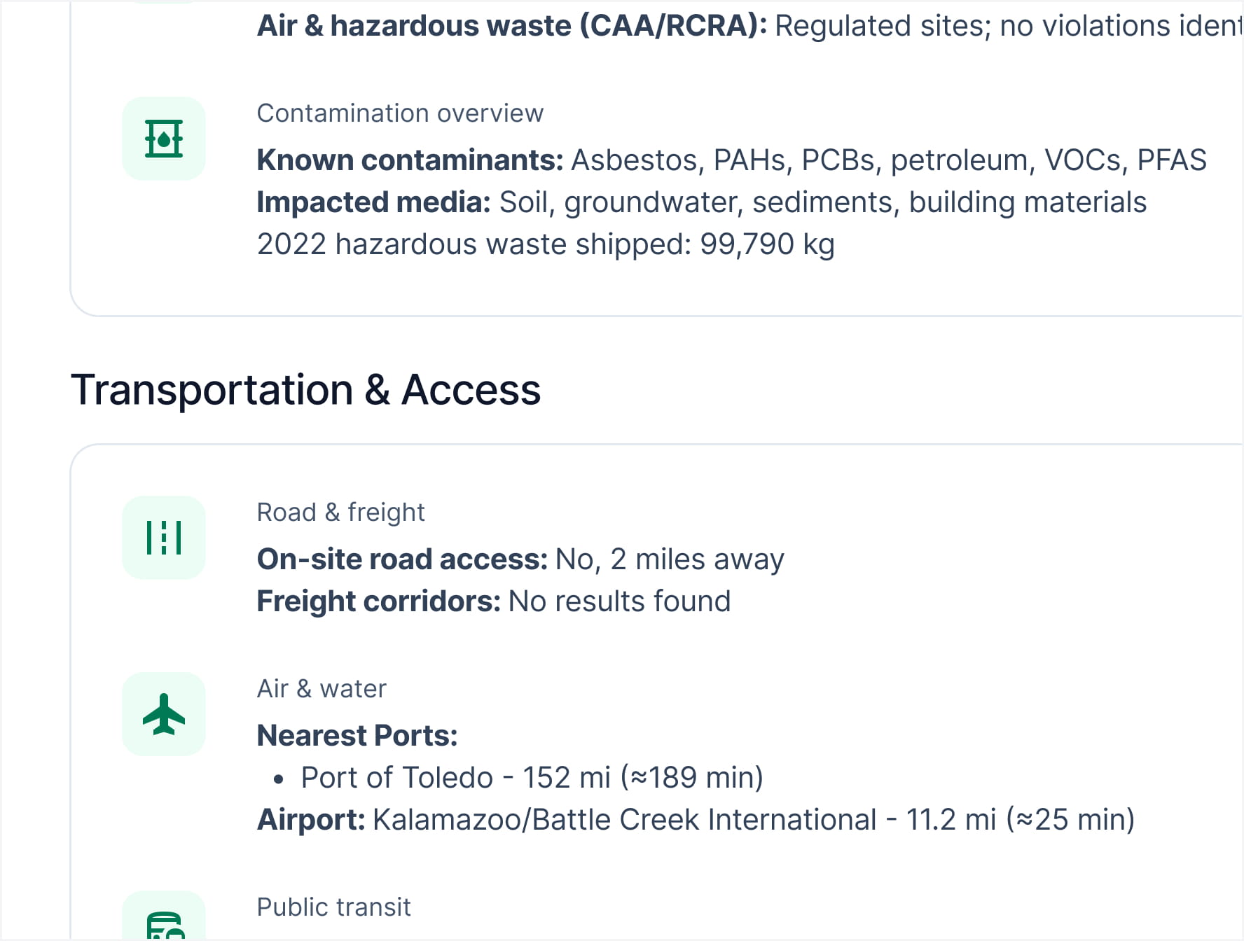 Knowledge base for brownfield properties